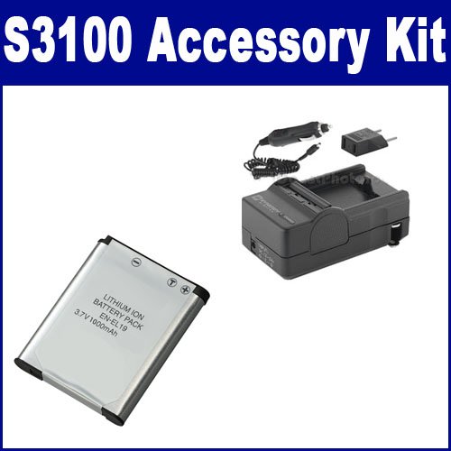 Nikon Coolpix S3100 Digital Camera Accessory Kit includes the following items: 1) Rapid Battery Charger for Casio NP-120 Battery - With Fold-In Wall Plug, Car & EU Adapters 2) EN-EL19 Lithium-Ion Battery - Rechargeable High Capacity (1000 mAh 3.7V) - replacement for Nikon EN-EL19 Battery will charge Nikon ENEL19 too