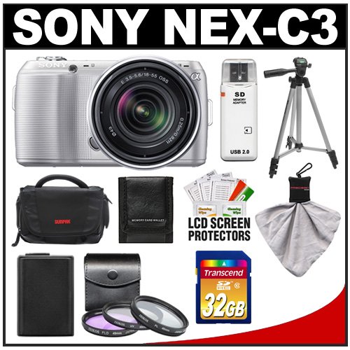 Sony Alpha NEX-C3 Digital Camera Body & E 18-55mm OSS Lens (Silver) with 32GB Card + Battery + 3 UV/FLD/PL Filters + Case + Tripod + Accessory Kit Review